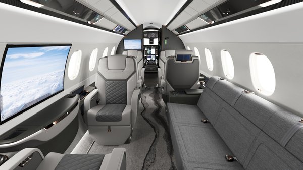 A mídia AIN, que repercutiu o lançamento da evolução dos jatos Praetor, revelou que o sistema de gerenciamento da cabine (CMS) foi atualizado da plataforma Honeywell Ovation para a plataforma Lufthansa Technik Nice, adicionando um aplicativo com controle por voz. A iluminação, as persianas e a temperatura também podem ser controladas pelas telas sensíveis ao toque nos apoios de braço com compartimentos de armazenamento, que possuem portas USB-A/C e carregamento sem fio, além dos painéis tecnológicos no teto. Os passageiros também podem criar comandos de voz pelo aplicativo para controlar vários elementos simultaneamente; por exemplo, um comando “ativar azul” abaixa todas as persianas e acende a iluminação LED no teto em azul, criando uma experiência cinematográfica ao assistir filmes.